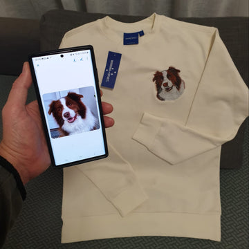 Embroidery based on your favourite photos — whether it’s your dog’s goofy grin, your cat’s regal pose, or your parrot’s colourful feathers. We do our best to capture their charm and personality in every stitch.
